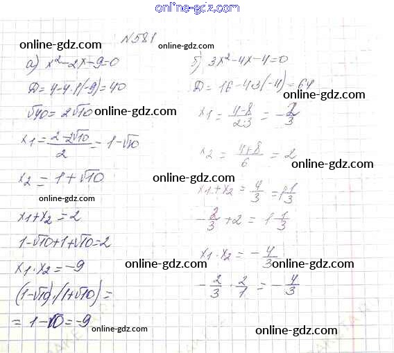 Готовые домашние задания по Алгебре за 8 класс Учебник Макарычев, Миндюк 2016 - Упражнения 581