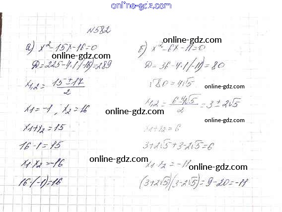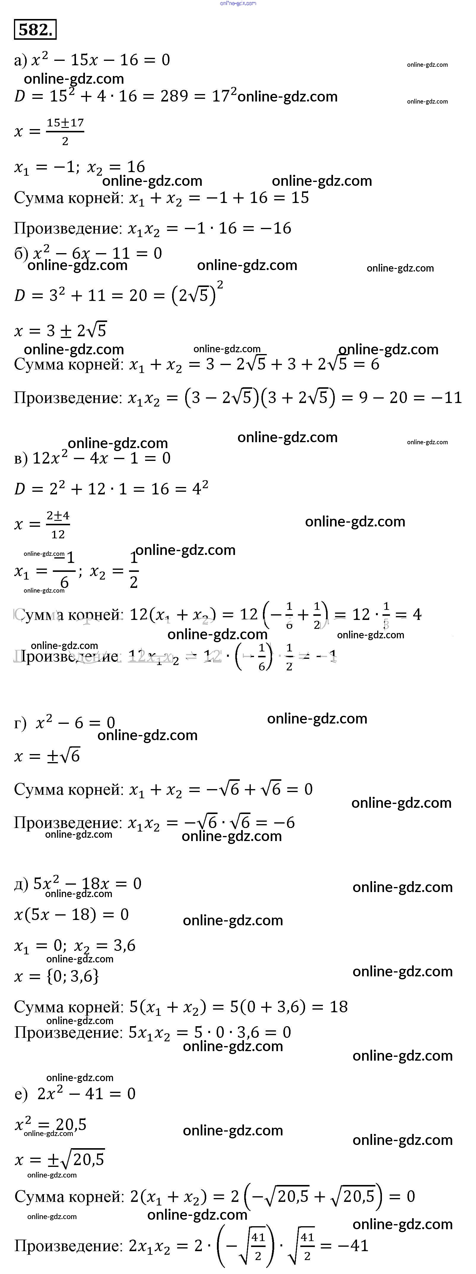 Готовые домашние задания по Алгебре за 8 класс Учебник Макарычев, Миндюк 2016 - Упражнения 582