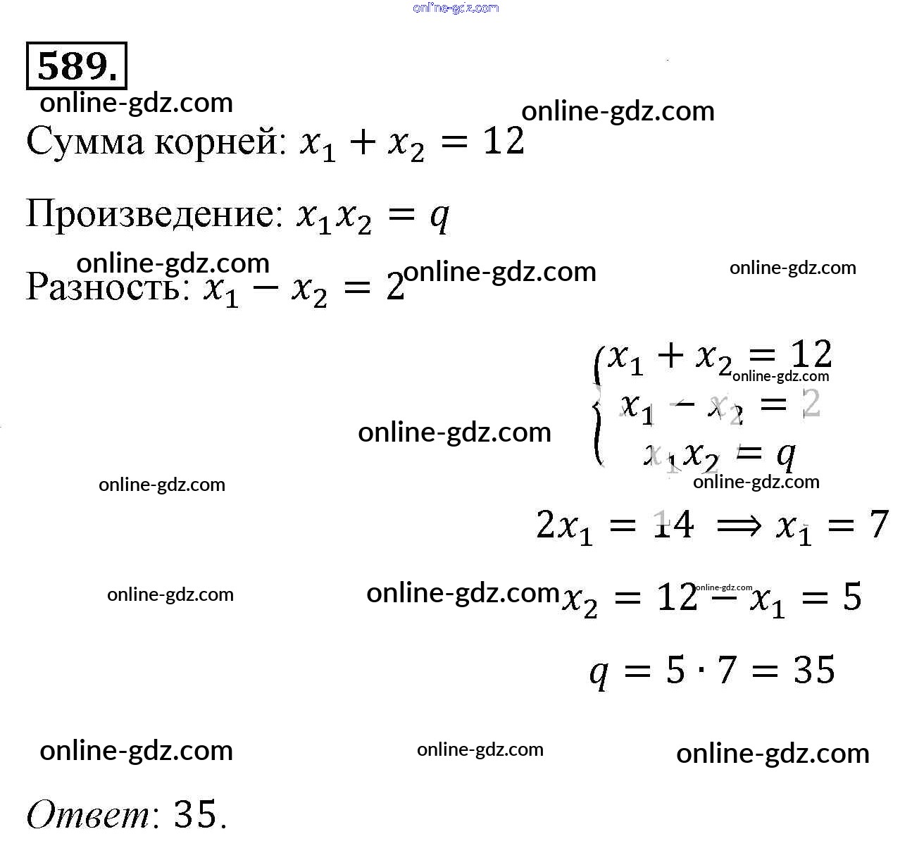 Готовые домашние задания по Алгебре за 8 класс Учебник Макарычев, Миндюк 2016 - Упражнения 589