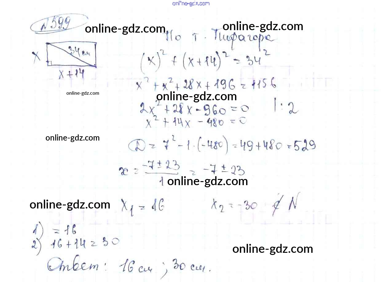 Готовые домашние задания по Алгебре за 8 класс Учебник Макарычев, Миндюк 2016 - Упражнения 599