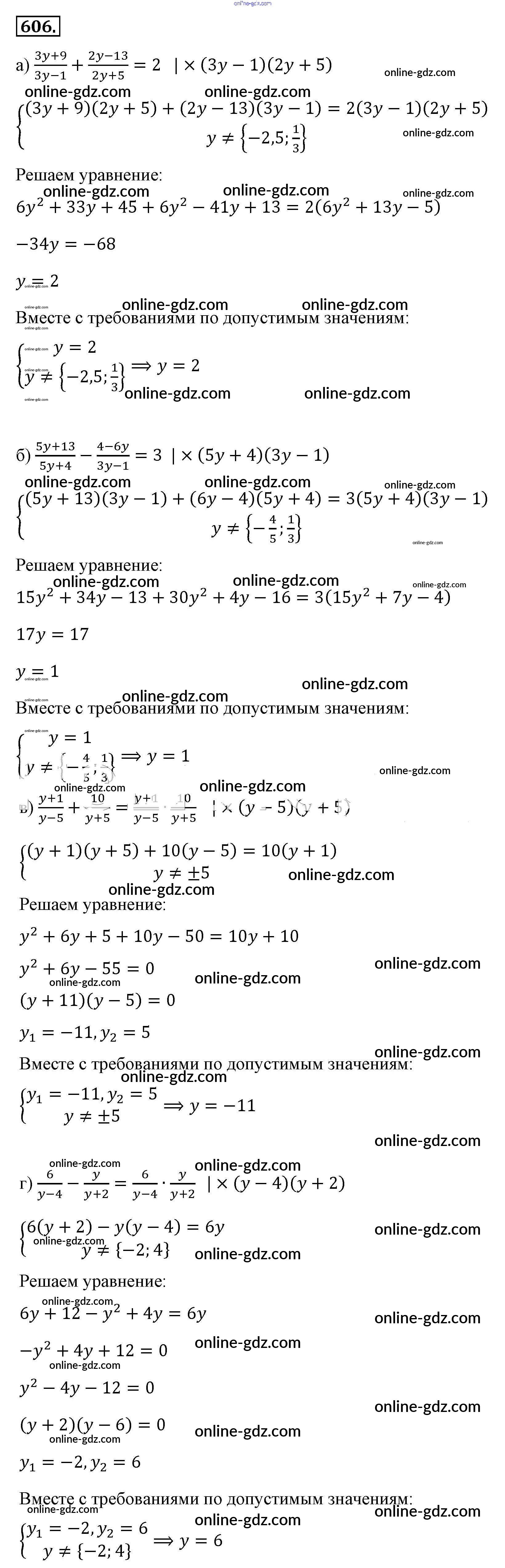 Готовые домашние задания по Алгебре за 8 класс Учебник Макарычев, Миндюк 2016 - Упражнения 606