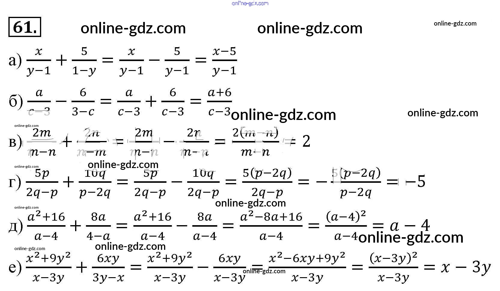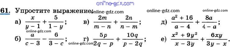 Готовые домашние задания по Алгебре за 8 класс Учебник Макарычев, Миндюк 2016 - Упражнения 61