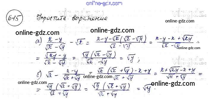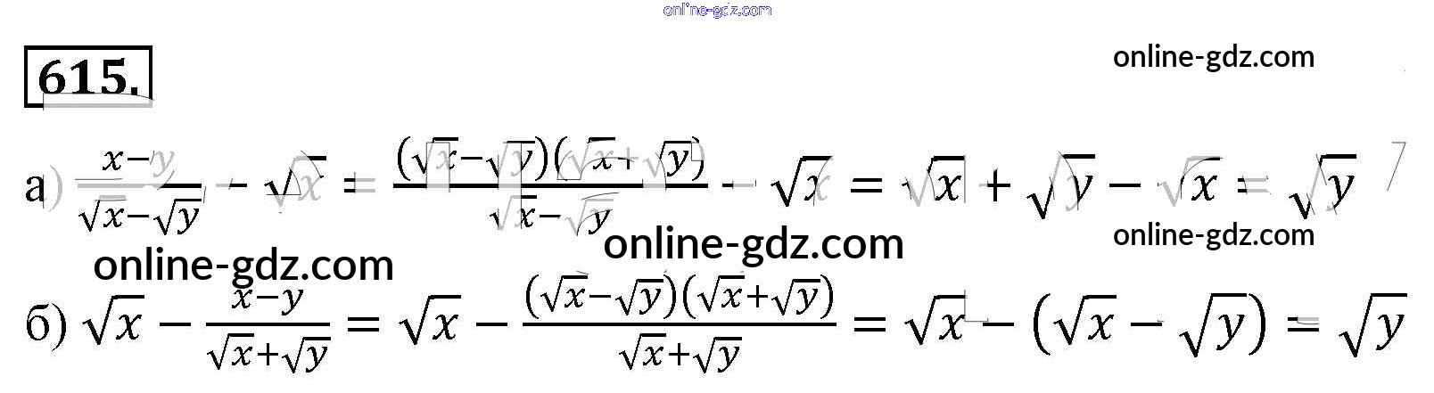 Готовые домашние задания по Алгебре за 8 класс Учебник Макарычев, Миндюк 2016 - Упражнения 615