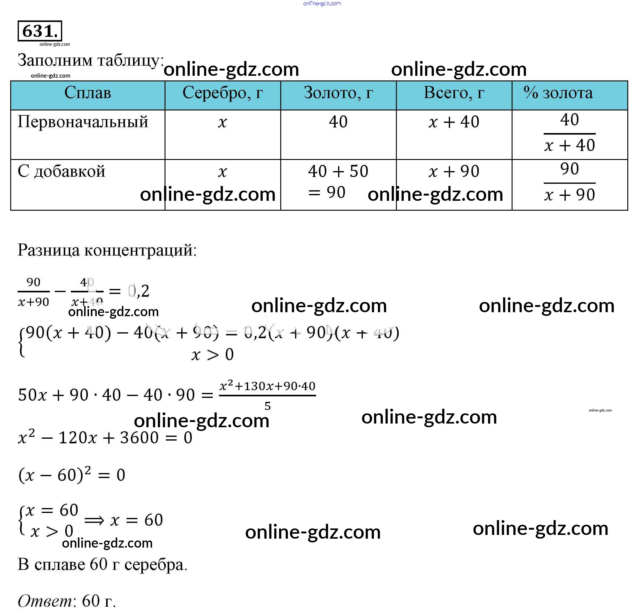 Готовые домашние задания по Алгебре за 8 класс Учебник Макарычев, Миндюк 2016 - Упражнения 631