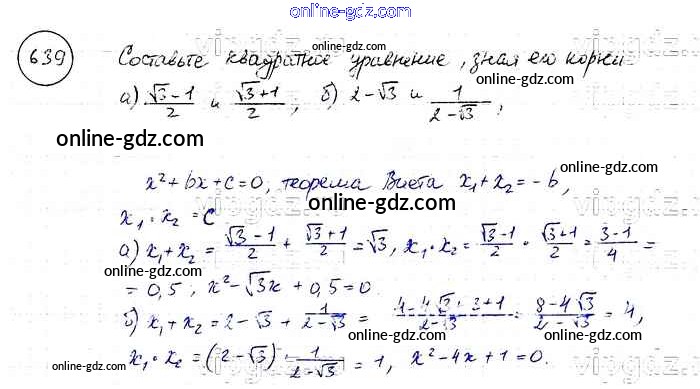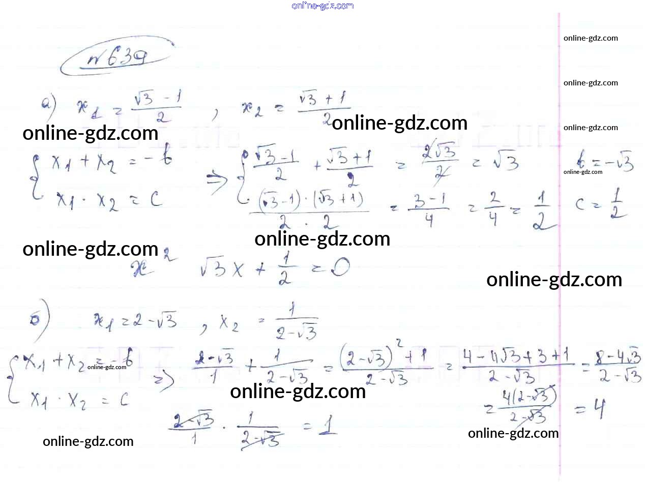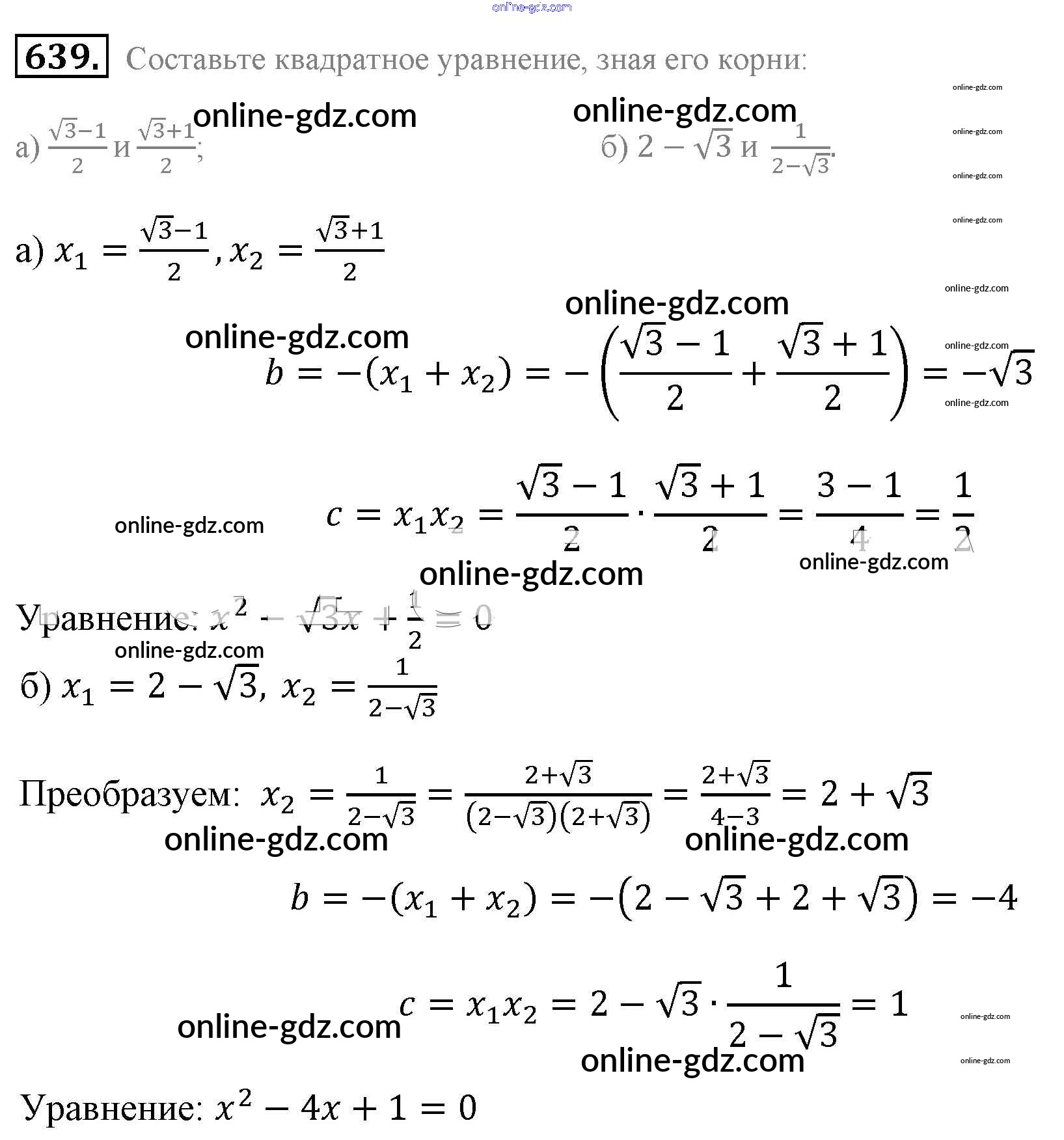 Готовые домашние задания по Алгебре за 8 класс Учебник Макарычев, Миндюк 2016 - Упражнения 639