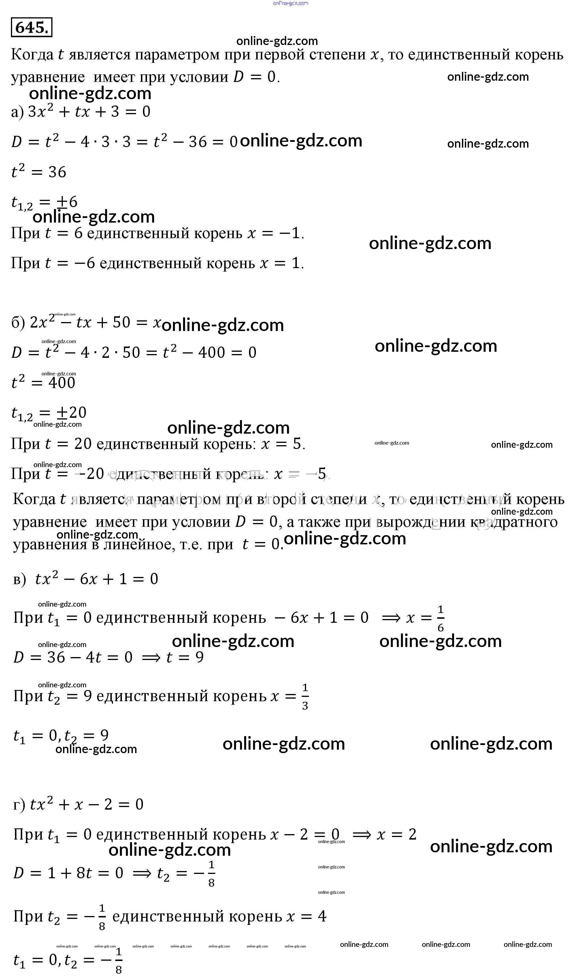 Готовые домашние задания по Алгебре за 8 класс Учебник Макарычев, Миндюк 2016 - Упражнения 645