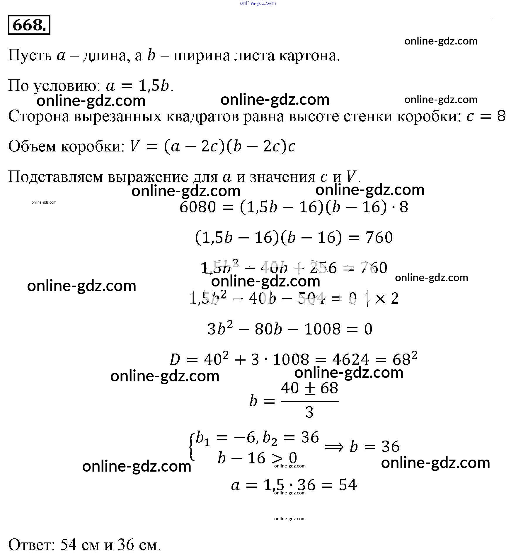 Готовые домашние задания по Алгебре за 8 класс Учебник Макарычев, Миндюк 2016 - Упражнения 668