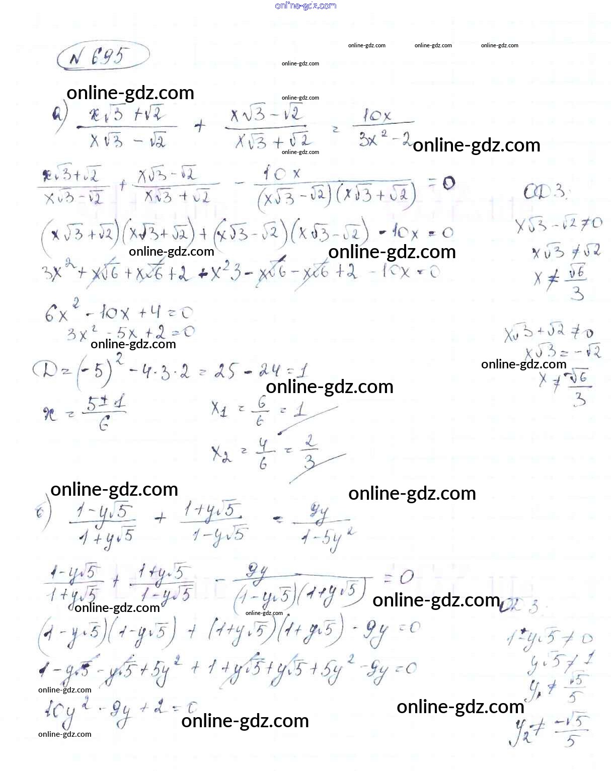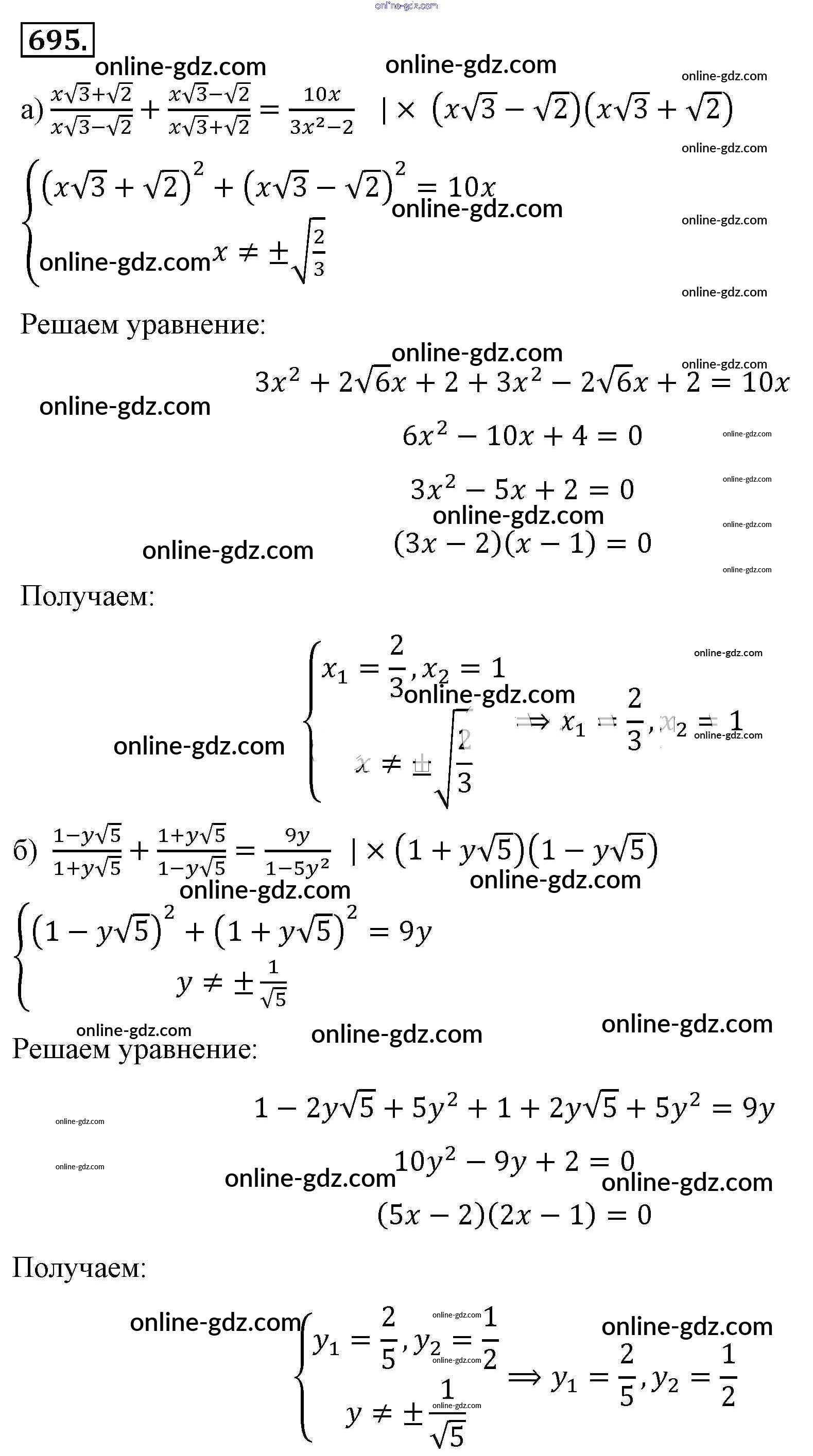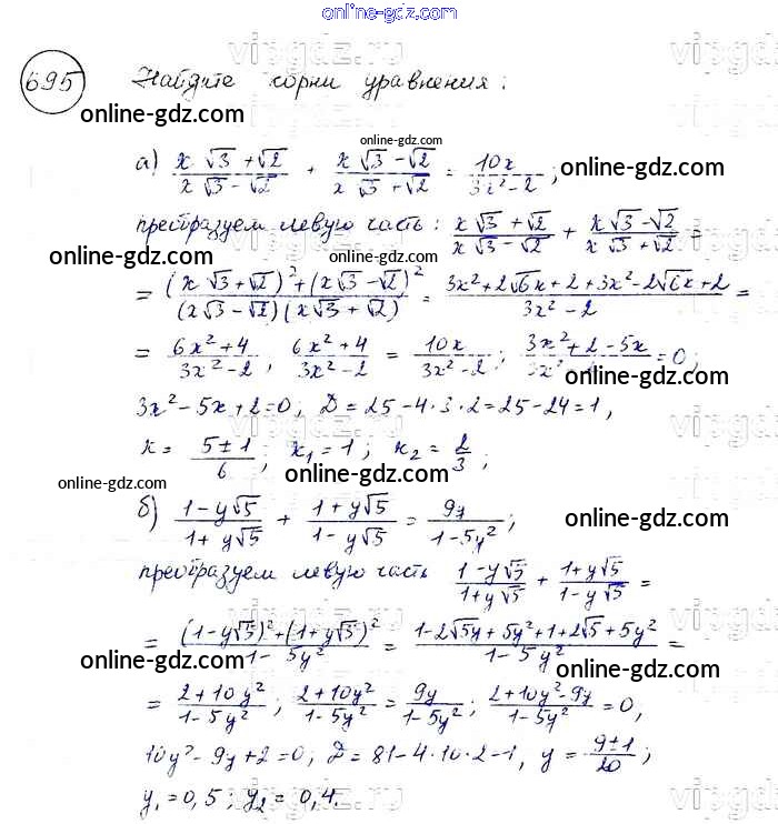 Готовые домашние задания по Алгебре за 8 класс Учебник Макарычев, Миндюк 2016 - Упражнения 695