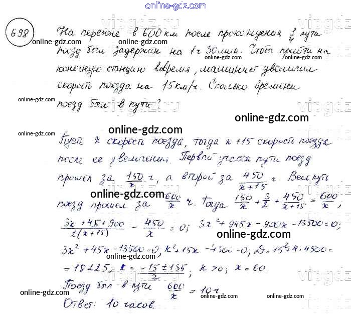 Готовые домашние задания по Алгебре за 8 класс Учебник Макарычев, Миндюк 2016 - Упражнения 698