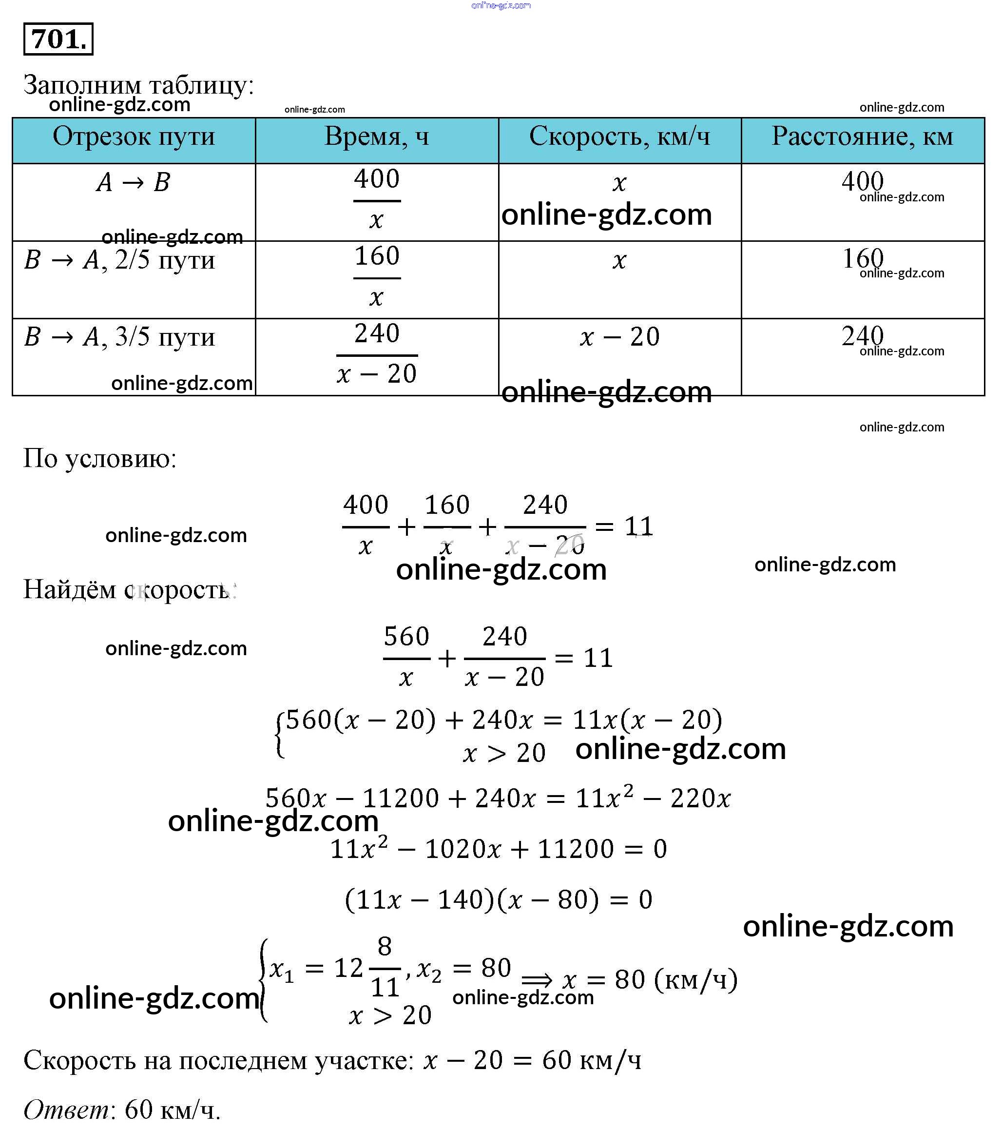 Готовые домашние задания по Алгебре за 8 класс Учебник Макарычев, Миндюк 2016 - Упражнения 701