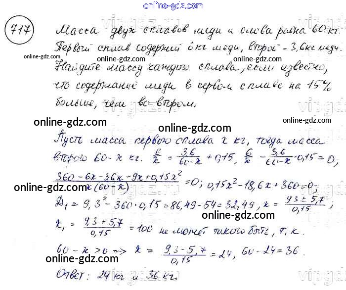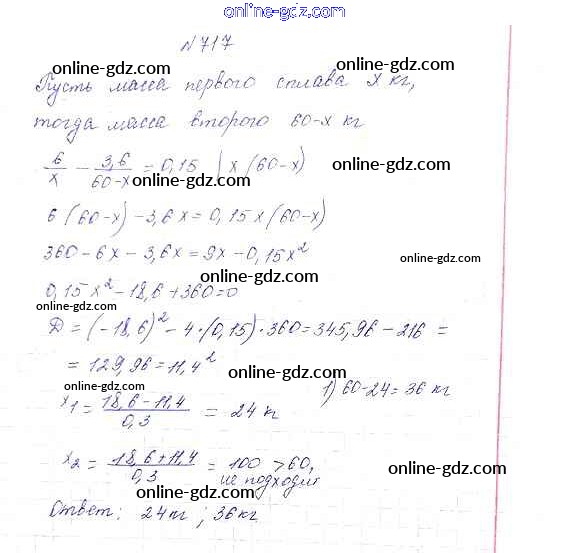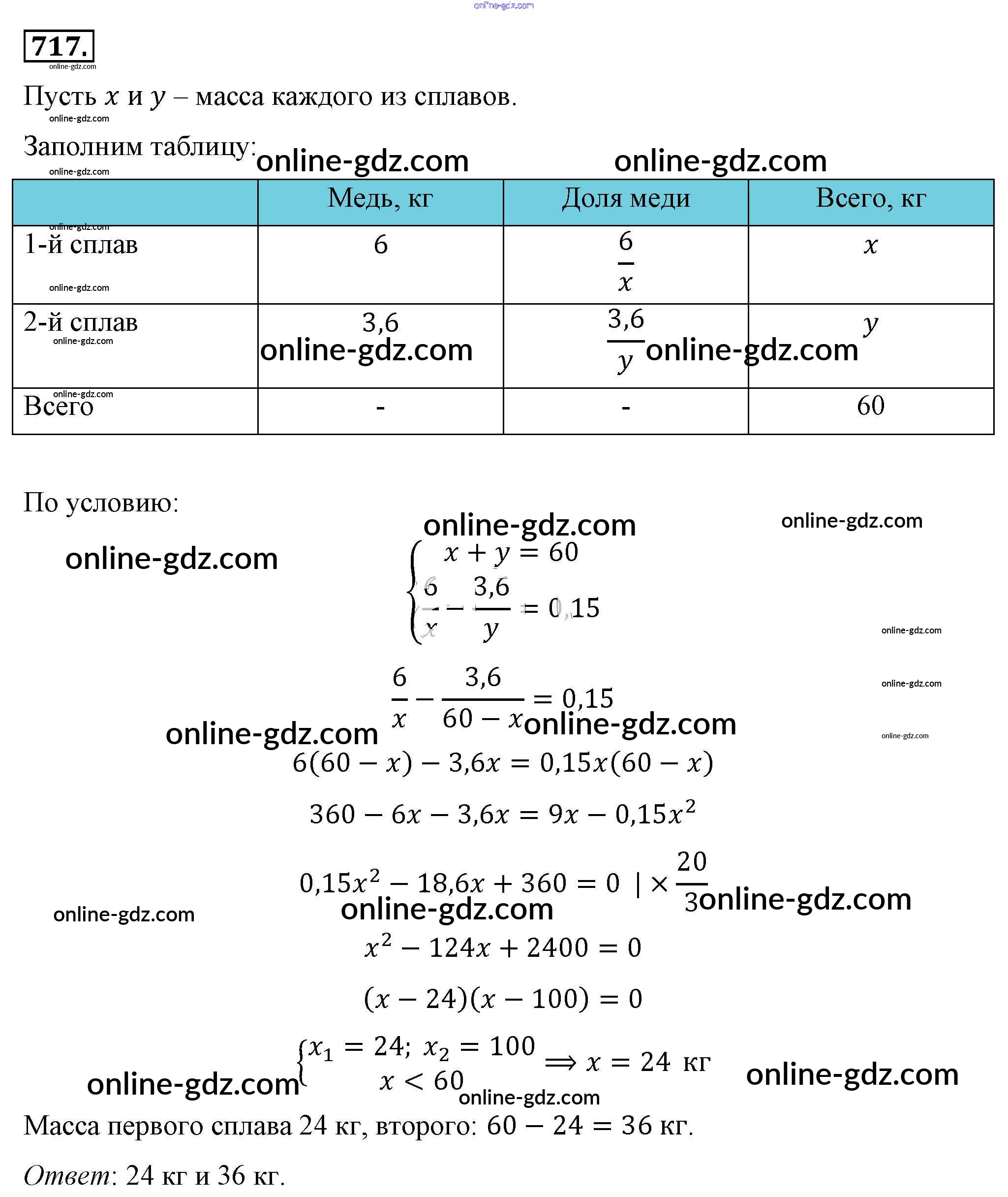 Готовые домашние задания по Алгебре за 8 класс Учебник Макарычев, Миндюк 2016 - Упражнения 717