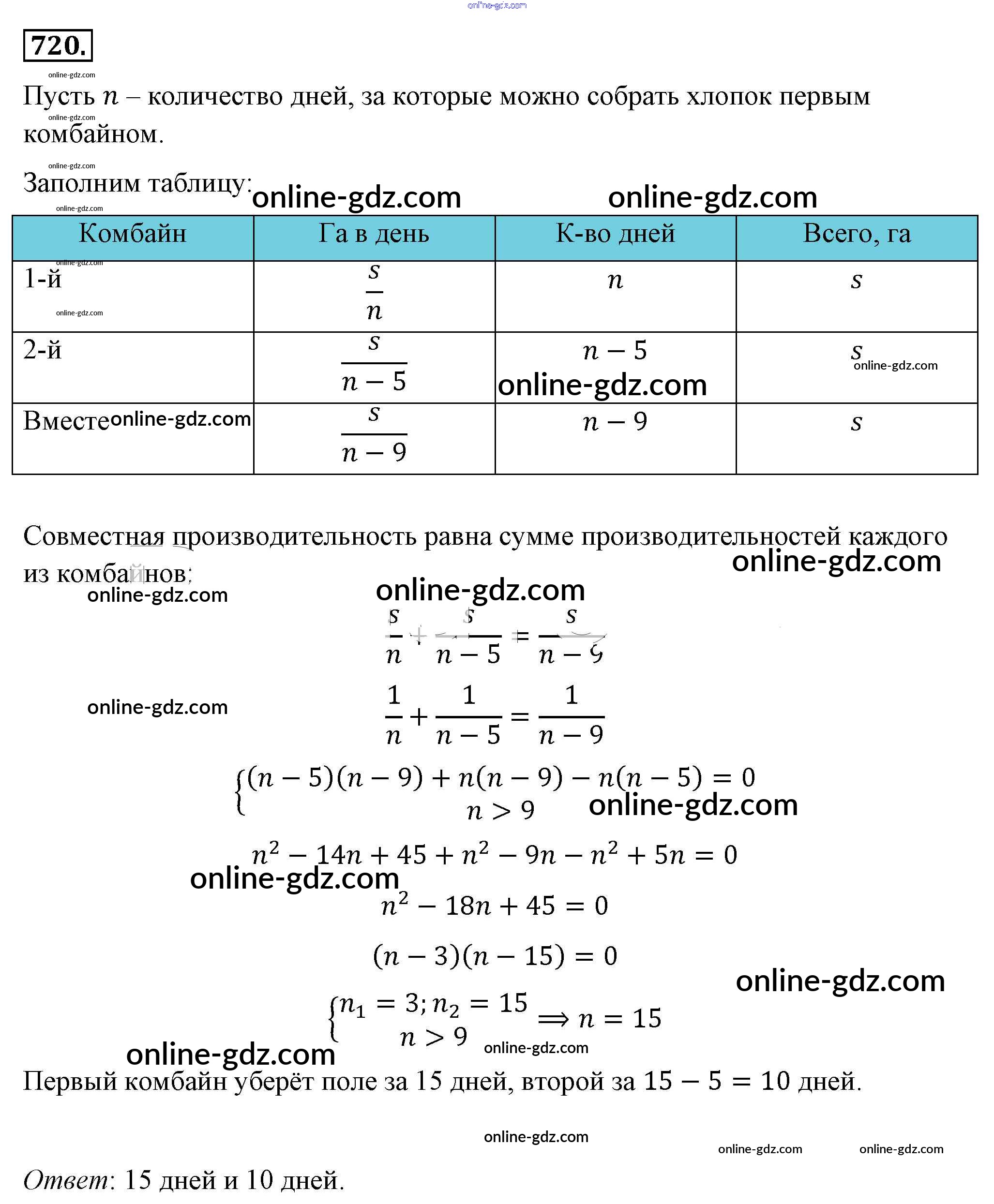 Готовые домашние задания по Алгебре за 8 класс Учебник Макарычев, Миндюк 2016 - Упражнения 720