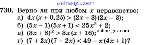 Готовые домашние задания по Алгебре за 8 класс Учебник Макарычев, Миндюк 2016 - Упражнения 730