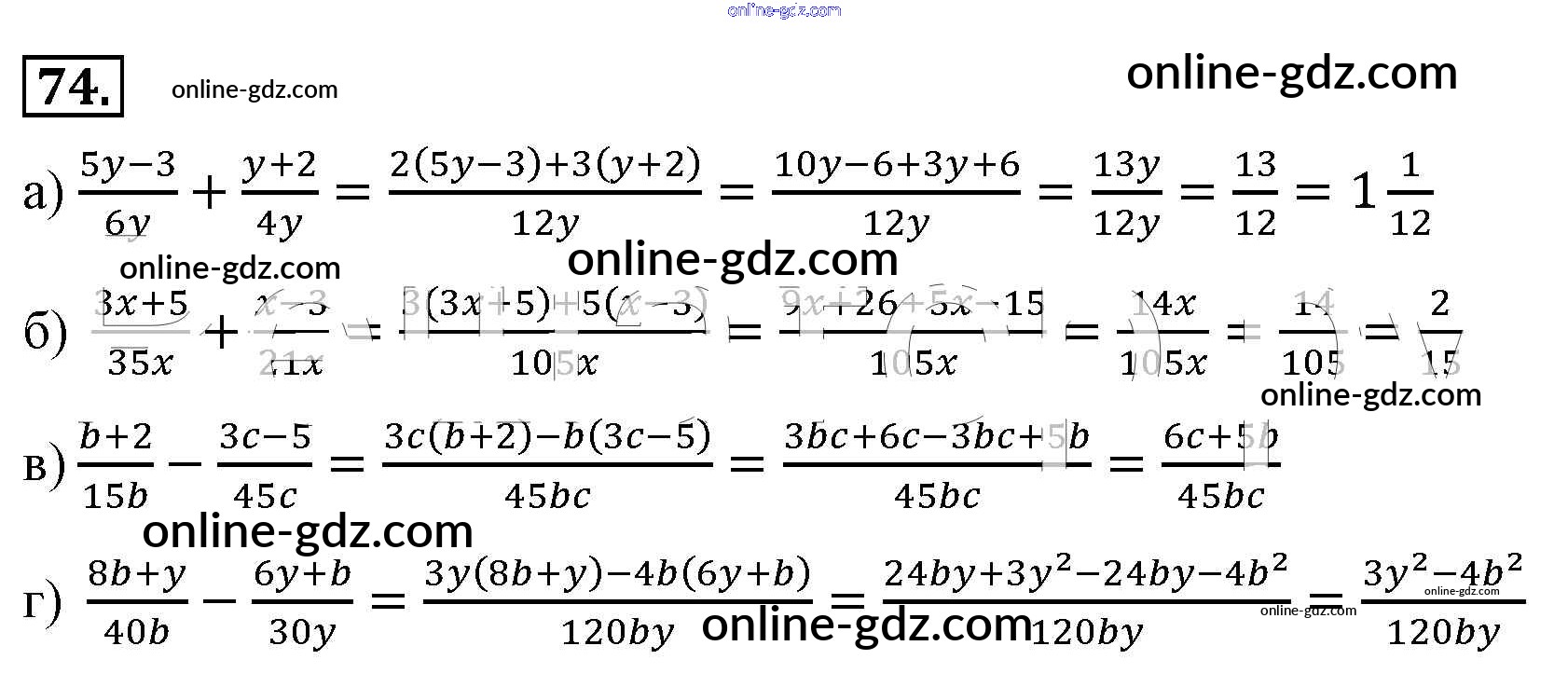 Готовые домашние задания по Алгебре за 8 класс Учебник Макарычев, Миндюк 2016 - Упражнения 74