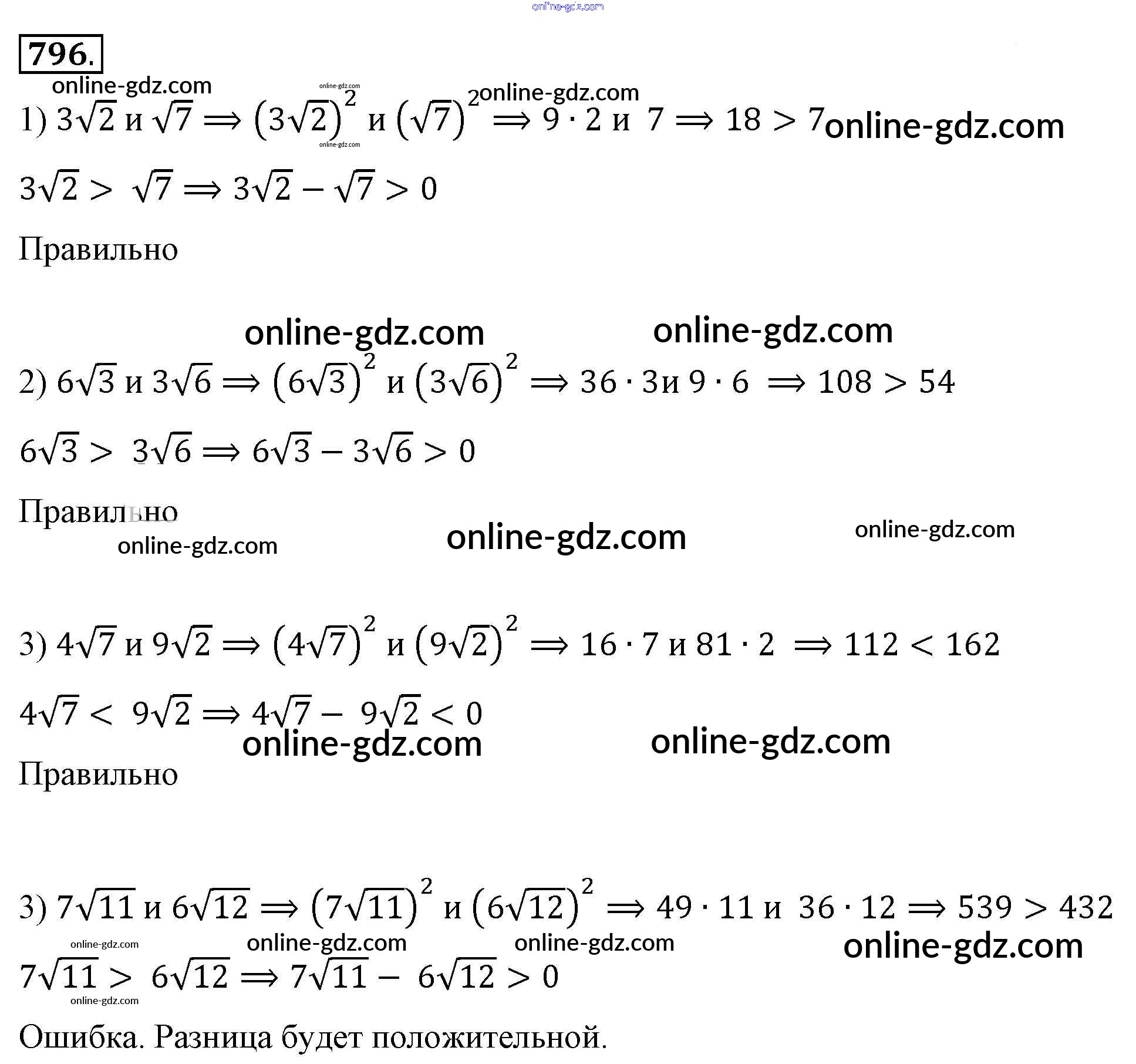 Готовые домашние задания по Алгебре за 8 класс Учебник Макарычев, Миндюк 2016 - Упражнения 796