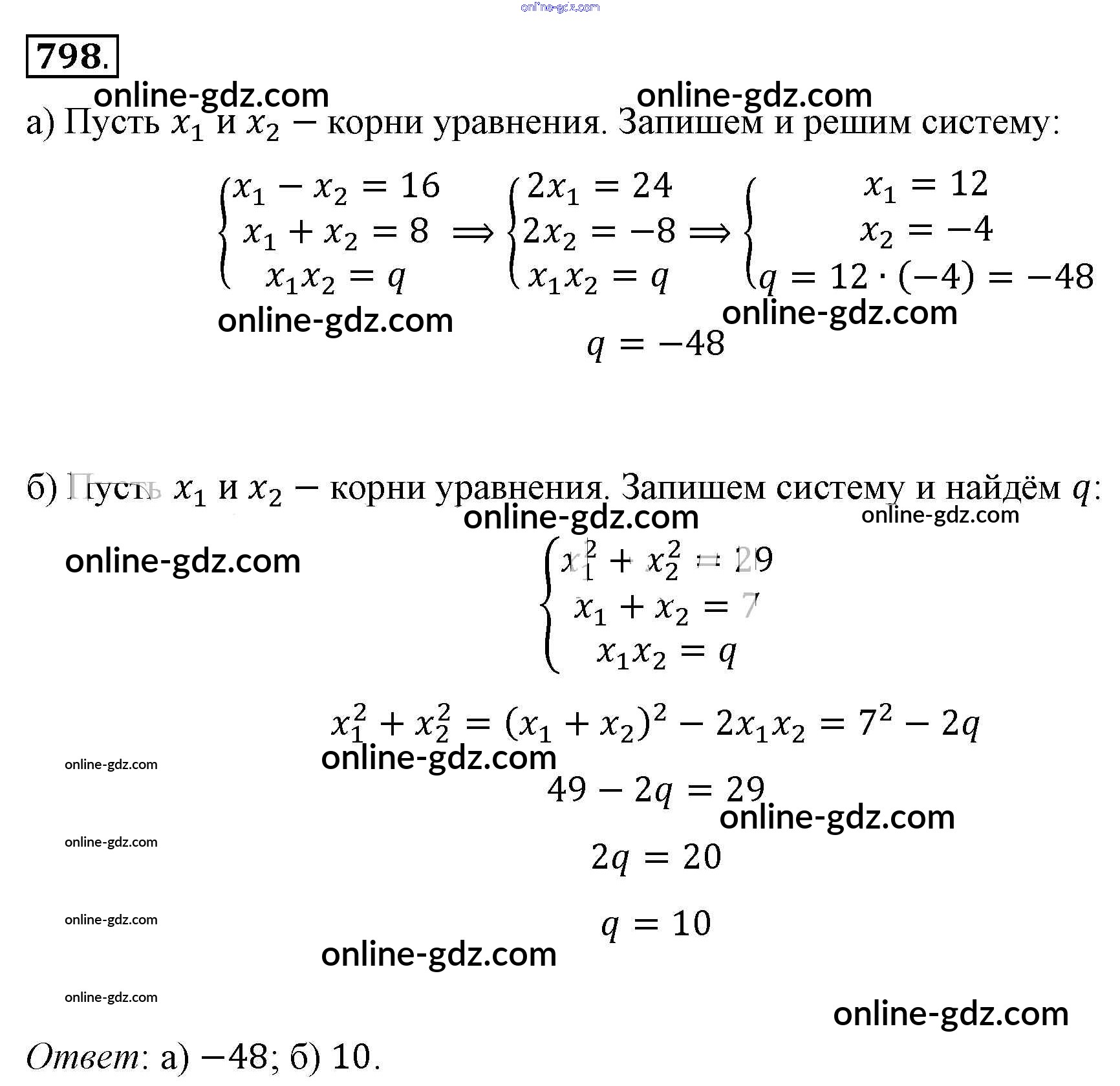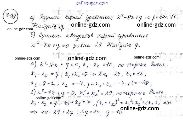 Готовые домашние задания по Алгебре за 8 класс Учебник Макарычев, Миндюк 2016 - Упражнения 798