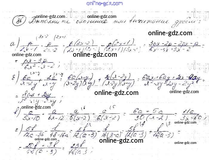 Готовые домашние задания по Алгебре за 8 класс Учебник Макарычев, Миндюк 2016 - Упражнения 86
