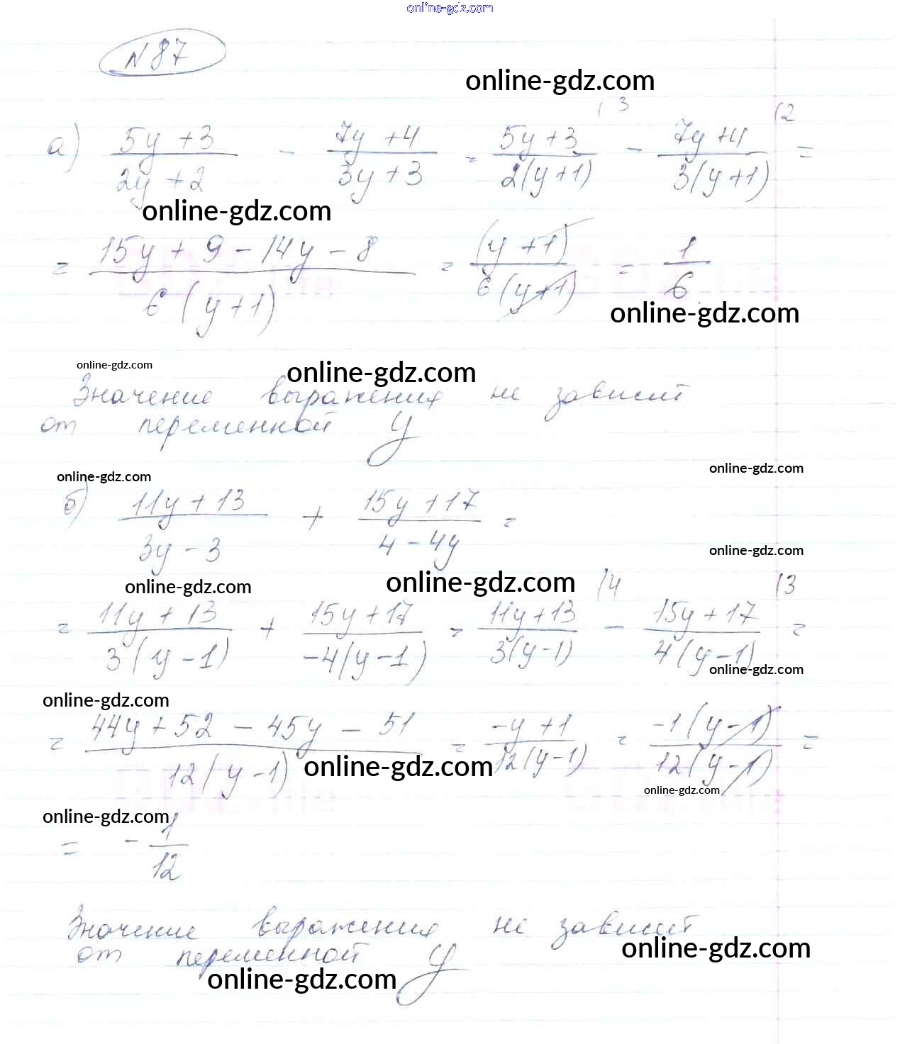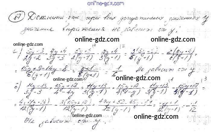 Готовые домашние задания по Алгебре за 8 класс Учебник Макарычев, Миндюк 2016 - Упражнения 87