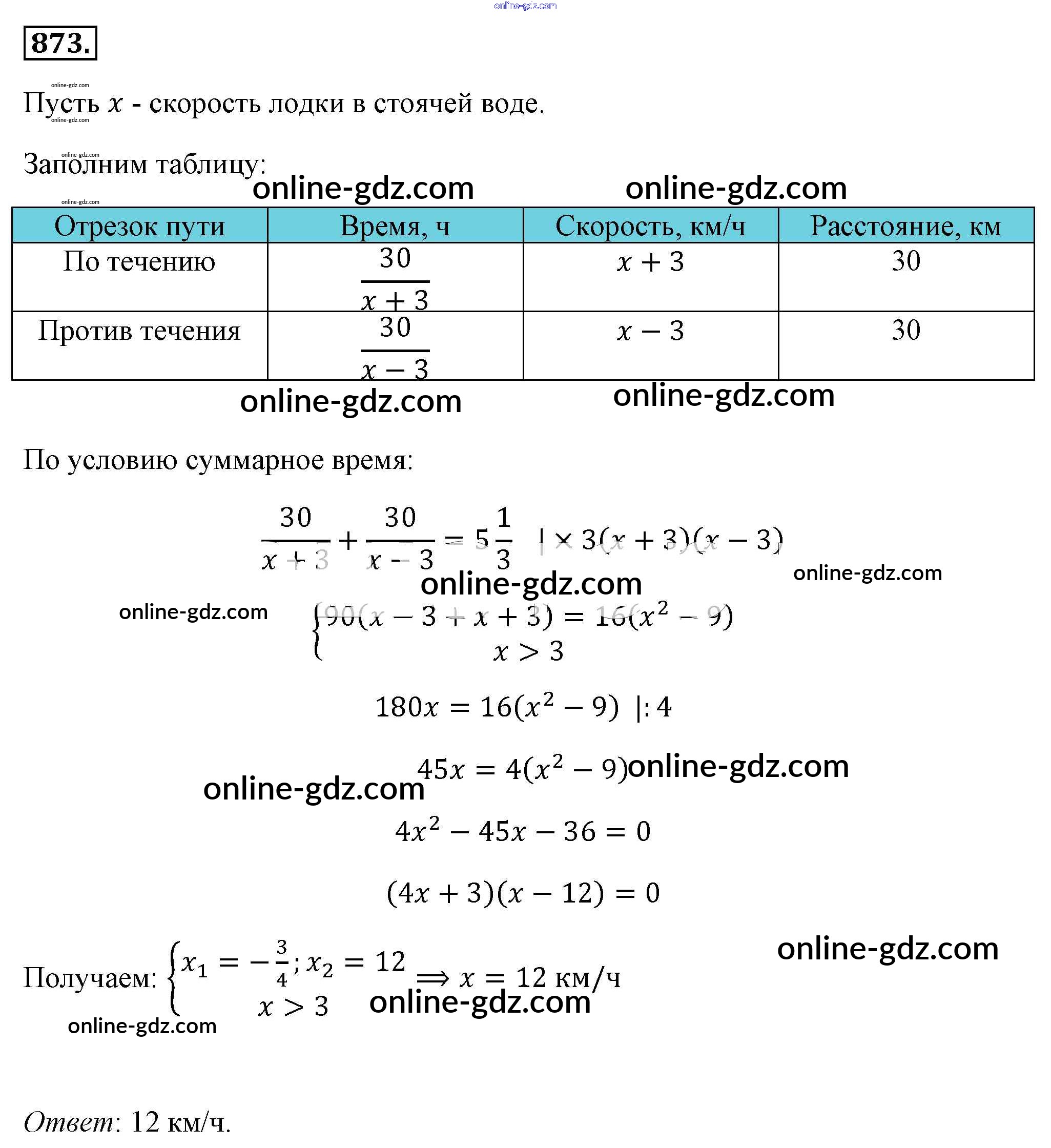 Готовые домашние задания по Алгебре за 8 класс Учебник Макарычев, Миндюк 2016 - Упражнения 873