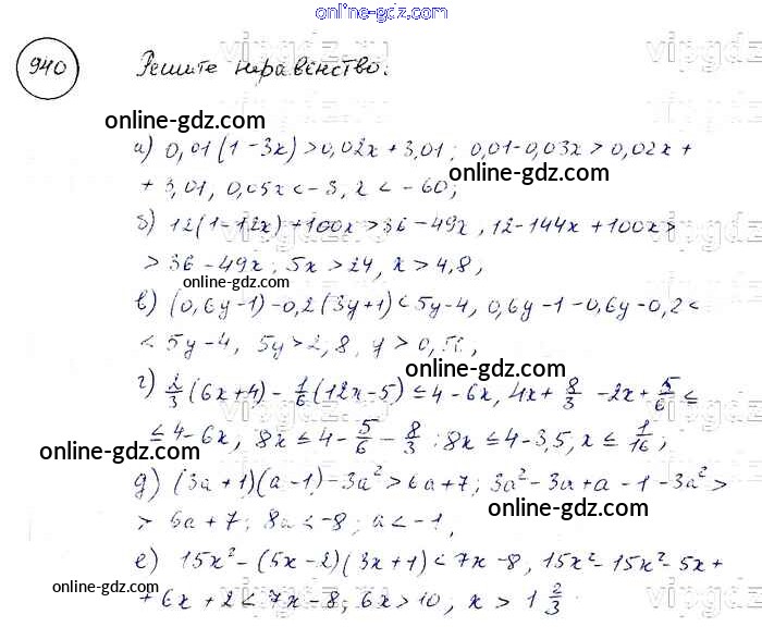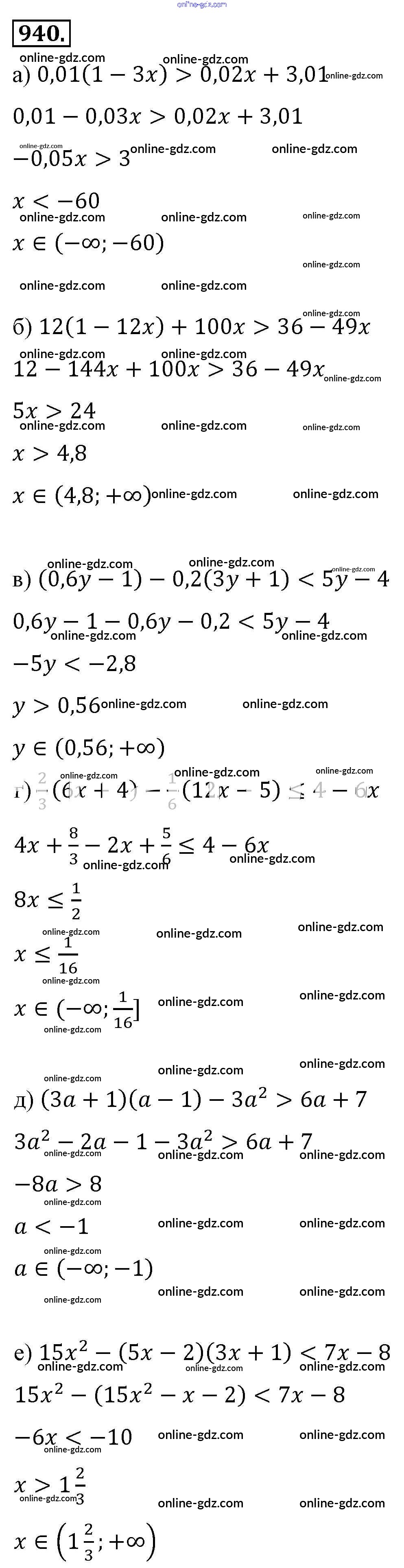 Готовые домашние задания по Алгебре за 8 класс Учебник Макарычев, Миндюк 2016 - Упражнения 940