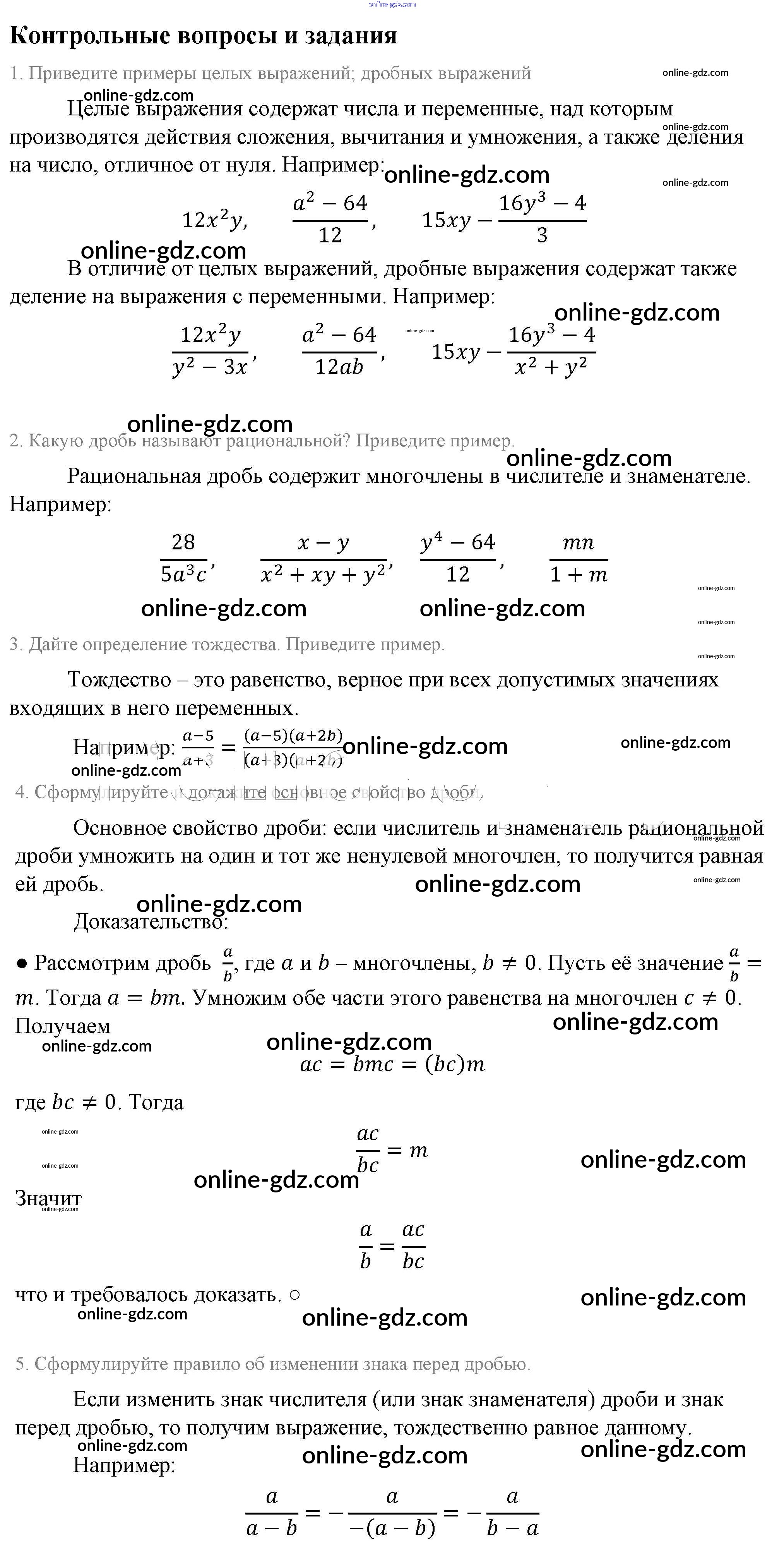 Готовые домашние задания по Алгебре за 8 класс Учебник Макарычев, Миндюк 2016 - Контрольные работы 1