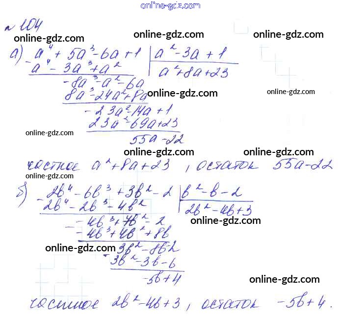 Готовые домашние задания по Алгебре за 8 класс Учебник Макарычев, Миндюк Углубленный уровень 2014 - Упражнения 104