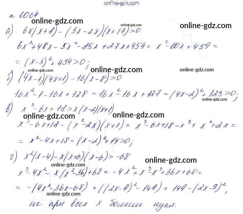 Готовые домашние задания по Алгебре за 8 класс Учебник Макарычев, Миндюк Углубленный уровень 2014 - Упражнения 1064