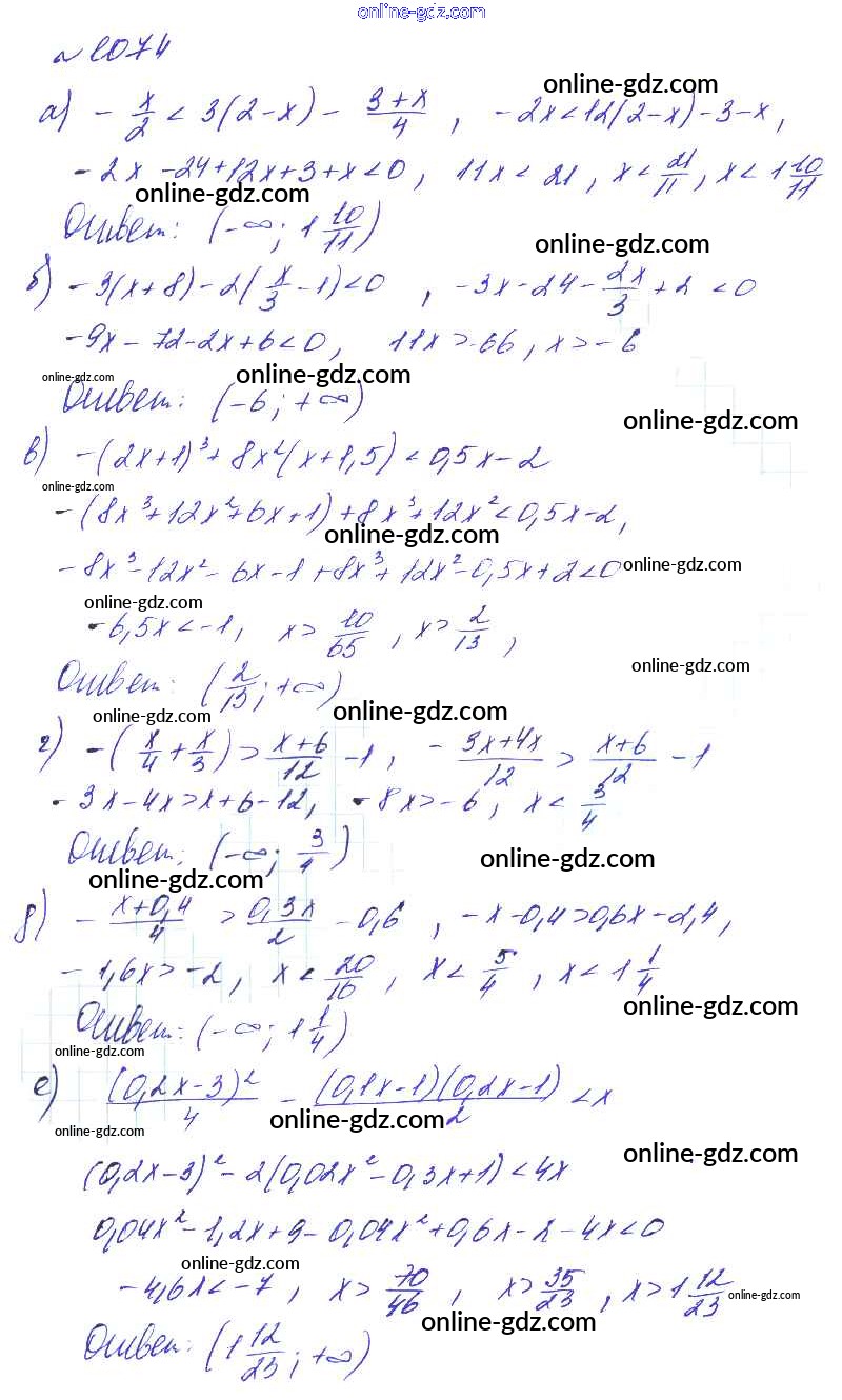 Готовые домашние задания по Алгебре за 8 класс Учебник Макарычев, Миндюк Углубленный уровень 2014 - Упражнения 1074
