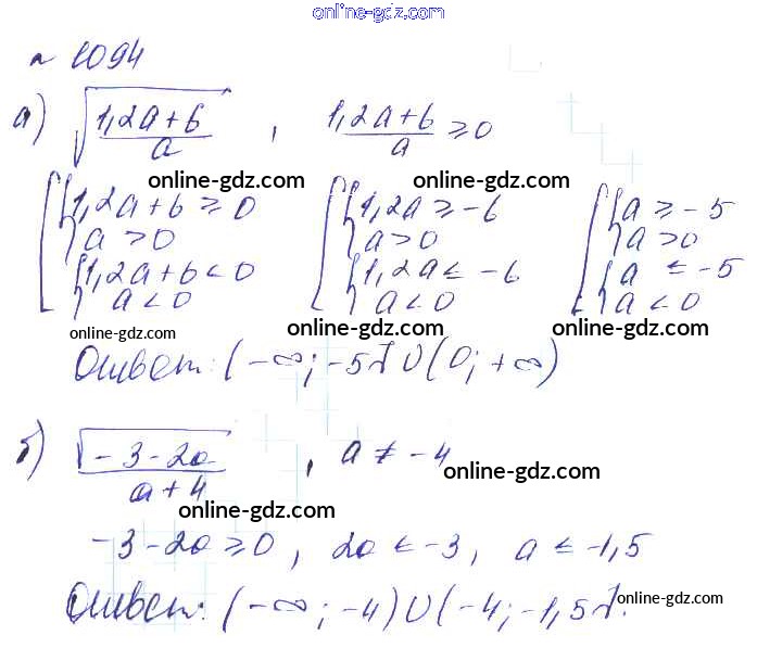 Готовые домашние задания по Алгебре за 8 класс Учебник Макарычев, Миндюк Углубленный уровень 2014 - Упражнения 1094