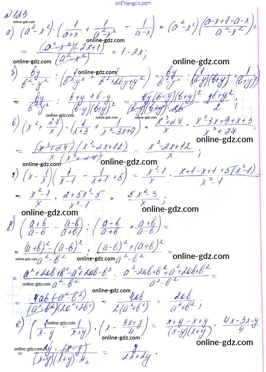 Готовые домашние задания по Алгебре за 8 класс Учебник Макарычев, Миндюк Углубленный уровень 2014 - Упражнения 123