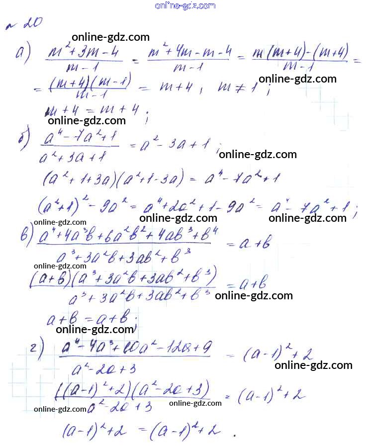 Готовые домашние задания по Алгебре за 8 класс Учебник Макарычев, Миндюк Углубленный уровень 2014 - Упражнения 20