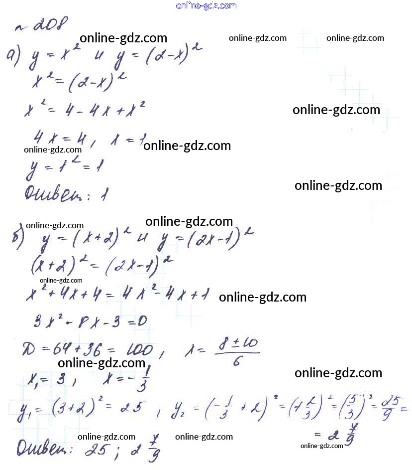 Готовые домашние задания по Алгебре за 8 класс Учебник Макарычев, Миндюк Углубленный уровень 2014 - Упражнения 208