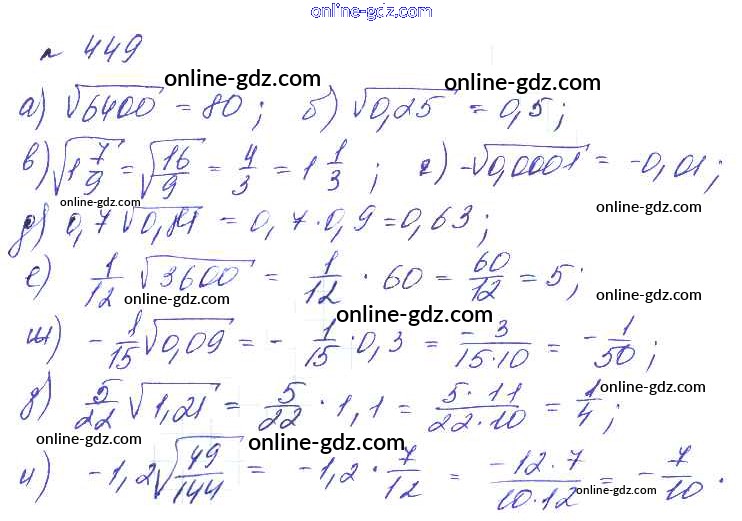 Готовые домашние задания по Алгебре за 8 класс Учебник Макарычев, Миндюк Углубленный уровень 2014 - Упражнения 449
