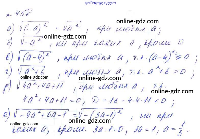Готовые домашние задания по Алгебре за 8 класс Учебник Макарычев, Миндюк Углубленный уровень 2014 - Упражнения 458