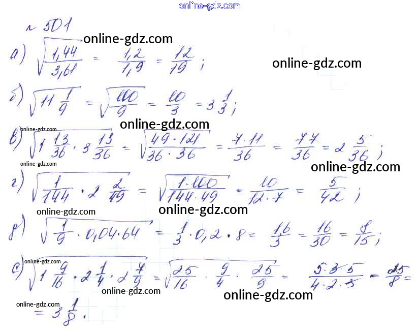 Готовые домашние задания по Алгебре за 8 класс Учебник Макарычев, Миндюк Углубленный уровень 2014 - Упражнения 501