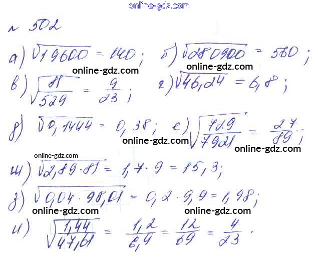 Готовые домашние задания по Алгебре за 8 класс Учебник Макарычев, Миндюк Углубленный уровень 2014 - Упражнения 502