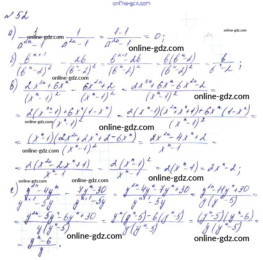 Готовые домашние задания по Алгебре за 8 класс Учебник Макарычев, Миндюк Углубленный уровень 2014 - Упражнения 52