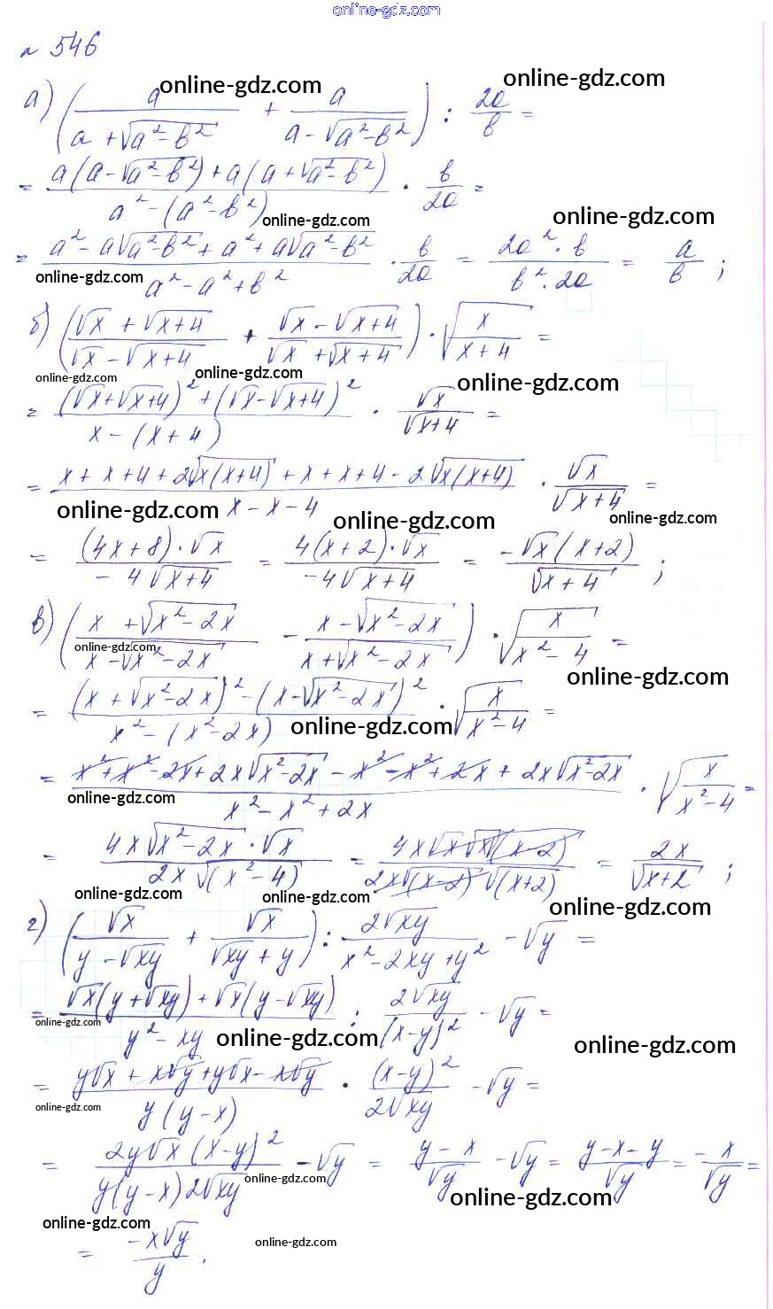 Готовые домашние задания по Алгебре за 8 класс Учебник Макарычев, Миндюк Углубленный уровень 2014 - Упражнения 546