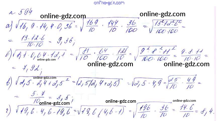 Готовые домашние задания по Алгебре за 8 класс Учебник Макарычев, Миндюк Углубленный уровень 2014 - Упражнения 594