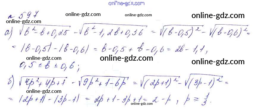 Готовые домашние задания по Алгебре за 8 класс Учебник Макарычев, Миндюк Углубленный уровень 2014 - Упражнения 597