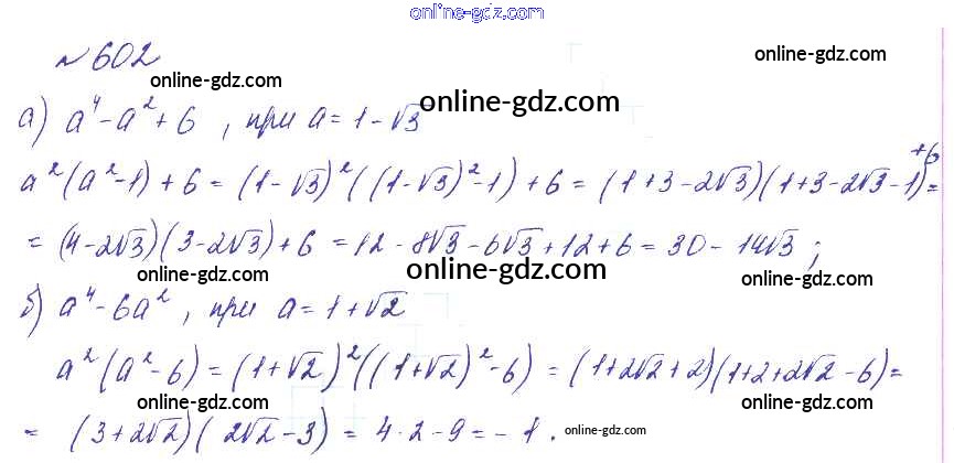 Готовые домашние задания по Алгебре за 8 класс Учебник Макарычев, Миндюк Углубленный уровень 2014 - Упражнения 602