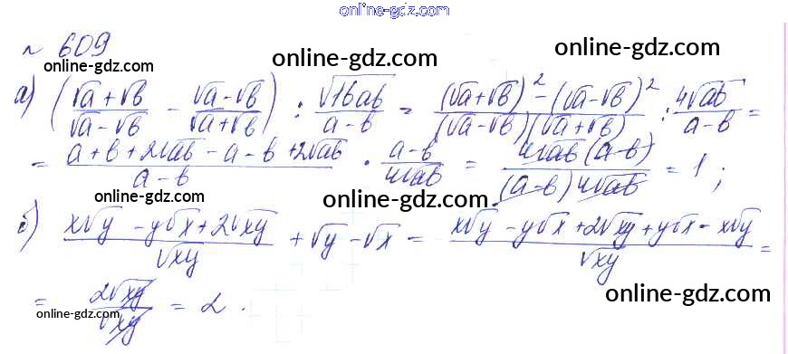 Готовые домашние задания по Алгебре за 8 класс Учебник Макарычев, Миндюк Углубленный уровень 2014 - Упражнения 609