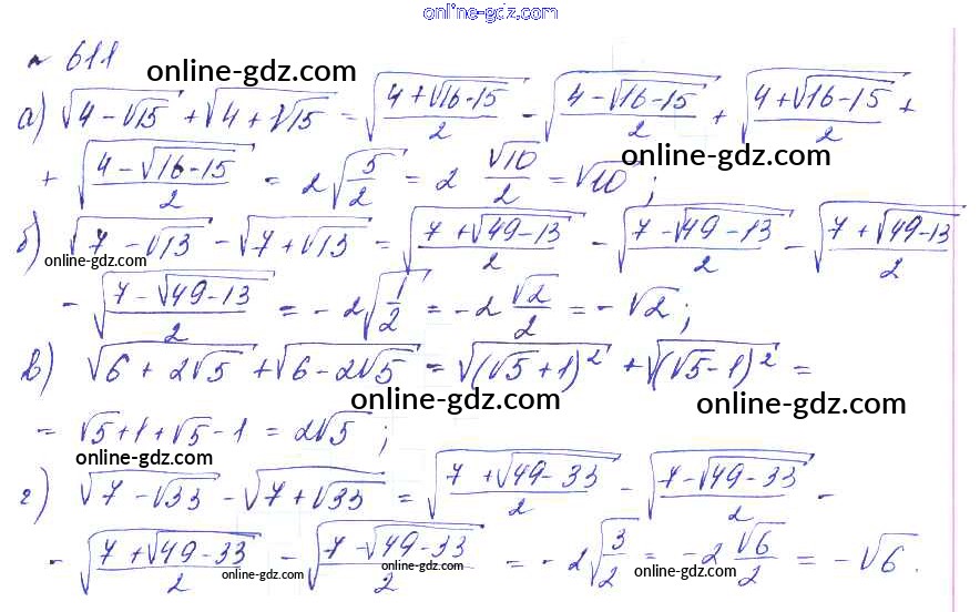 Готовые домашние задания по Алгебре за 8 класс Учебник Макарычев, Миндюк Углубленный уровень 2014 - Упражнения 611