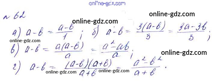 Готовые домашние задания по Алгебре за 8 класс Учебник Макарычев, Миндюк Углубленный уровень 2014 - Упражнения 62