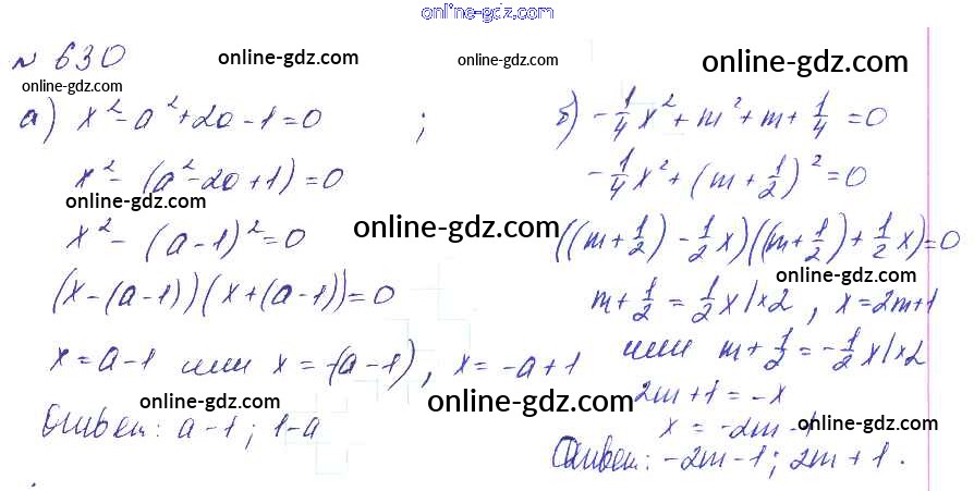 Готовые домашние задания по Алгебре за 8 класс Учебник Макарычев, Миндюк Углубленный уровень 2014 - Упражнения 630