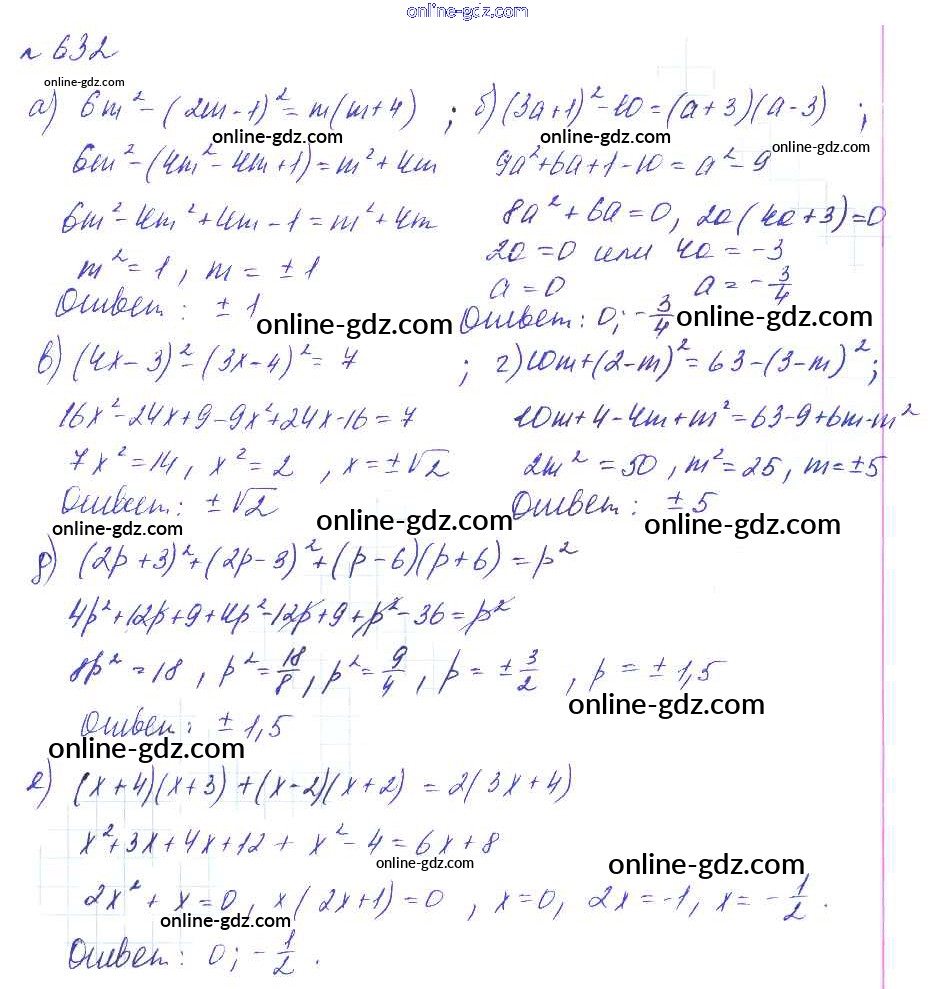 Готовые домашние задания по Алгебре за 8 класс Учебник Макарычев, Миндюк Углубленный уровень 2014 - Упражнения 632