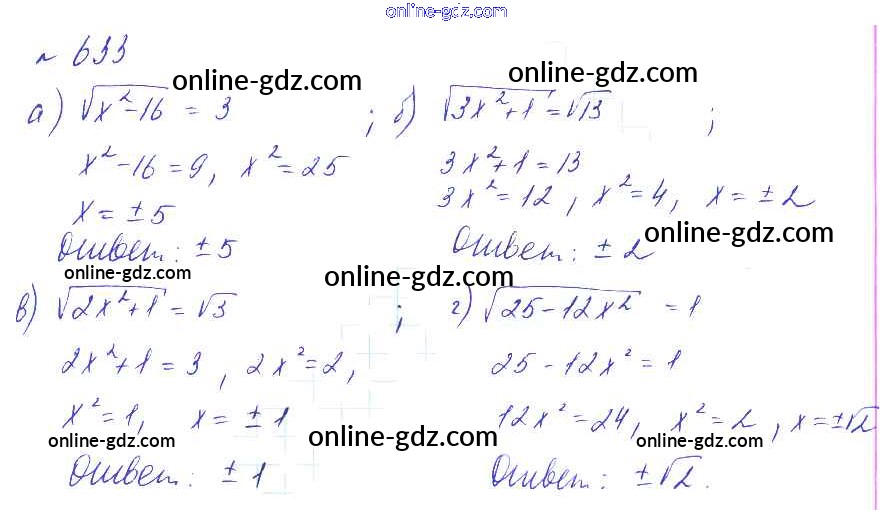 Готовые домашние задания по Алгебре за 8 класс Учебник Макарычев, Миндюк Углубленный уровень 2014 - Упражнения 633