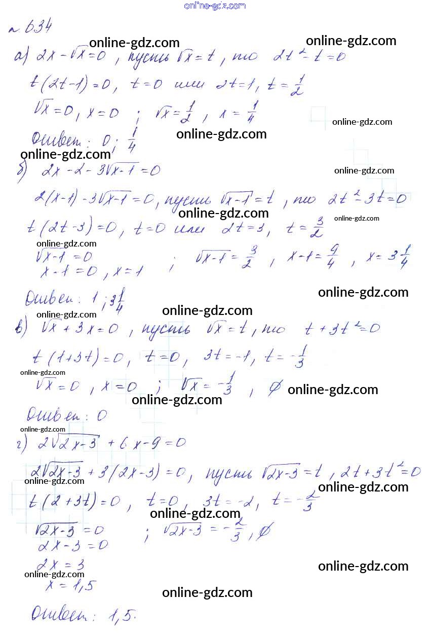 Готовые домашние задания по Алгебре за 8 класс Учебник Макарычев, Миндюк Углубленный уровень 2014 - Упражнения 634