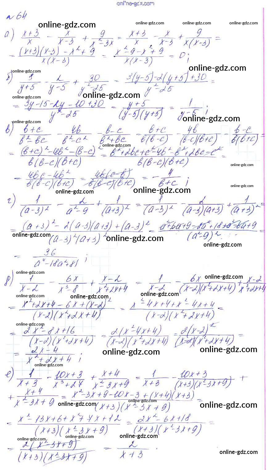 Готовые домашние задания по Алгебре за 8 класс Учебник Макарычев, Миндюк Углубленный уровень 2014 - Упражнения 64