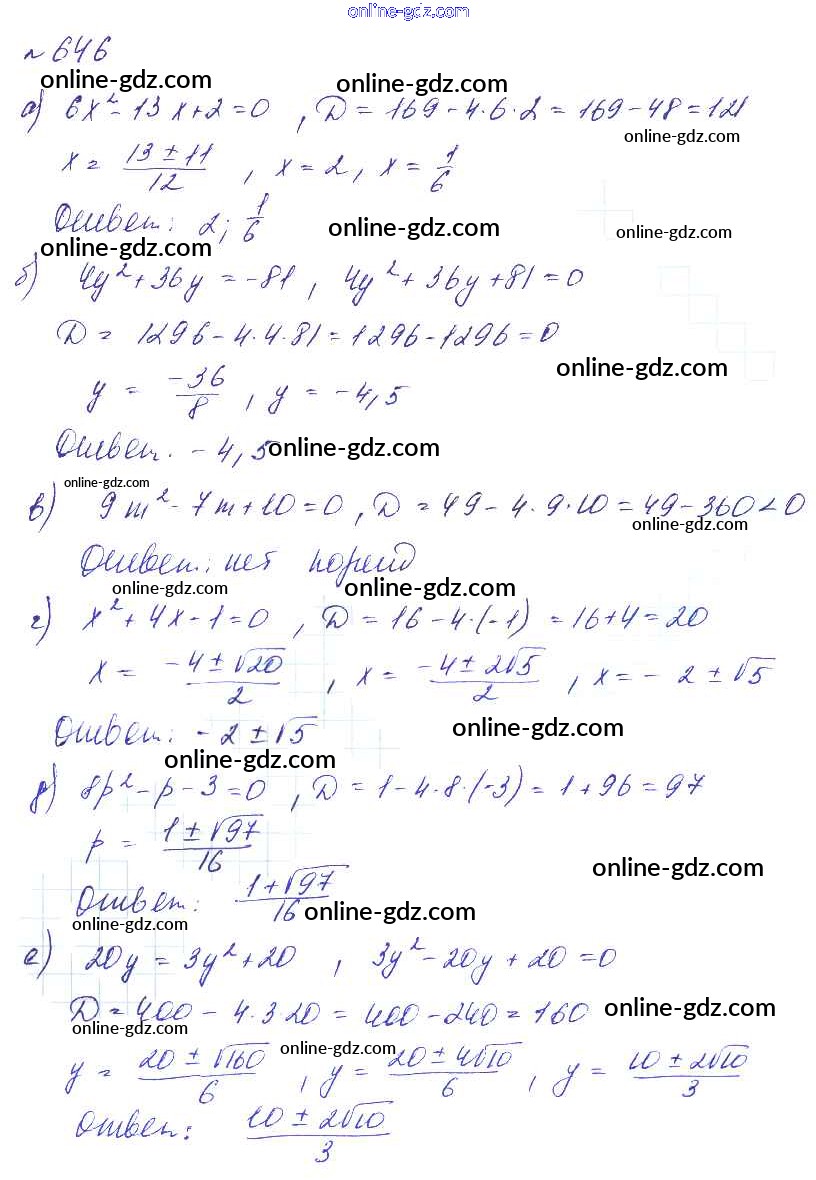 Готовые домашние задания по Алгебре за 8 класс Учебник Макарычев, Миндюк Углубленный уровень 2014 - Упражнения 646